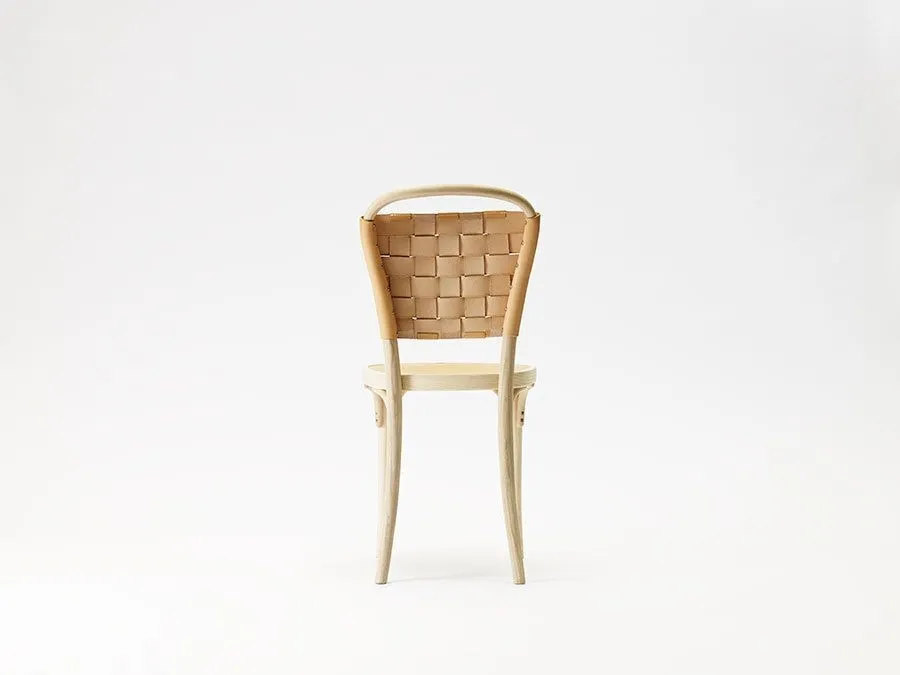 Material: Solid bent beech or ash with wooden seat. Backrest and seat in vegetable tanned leather