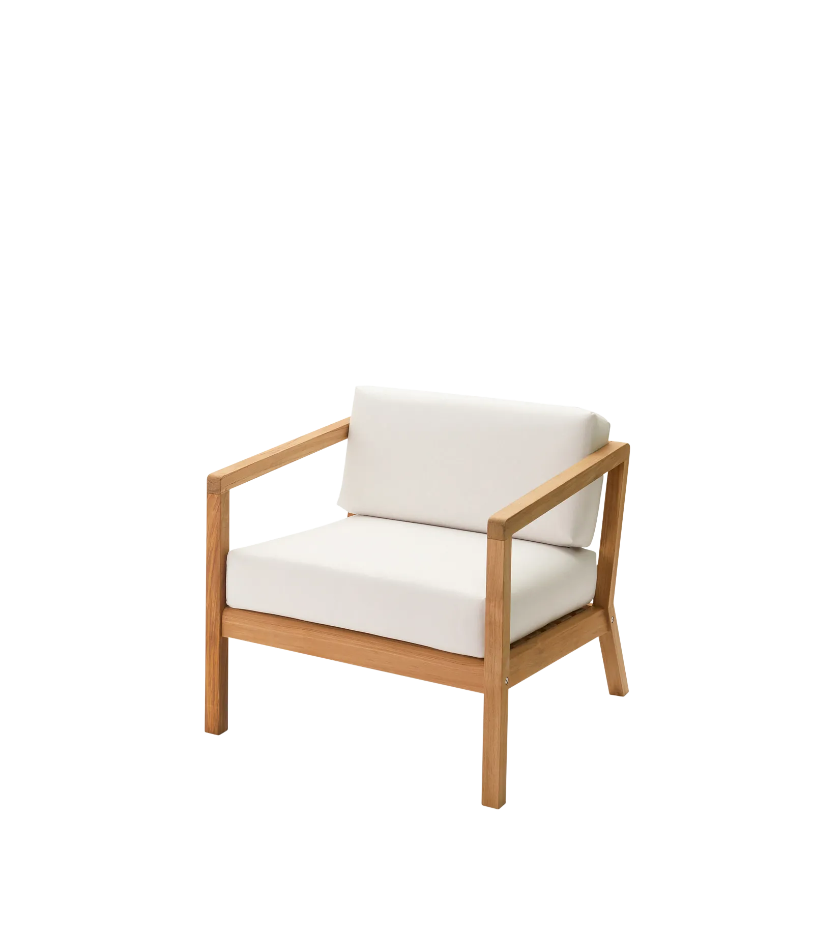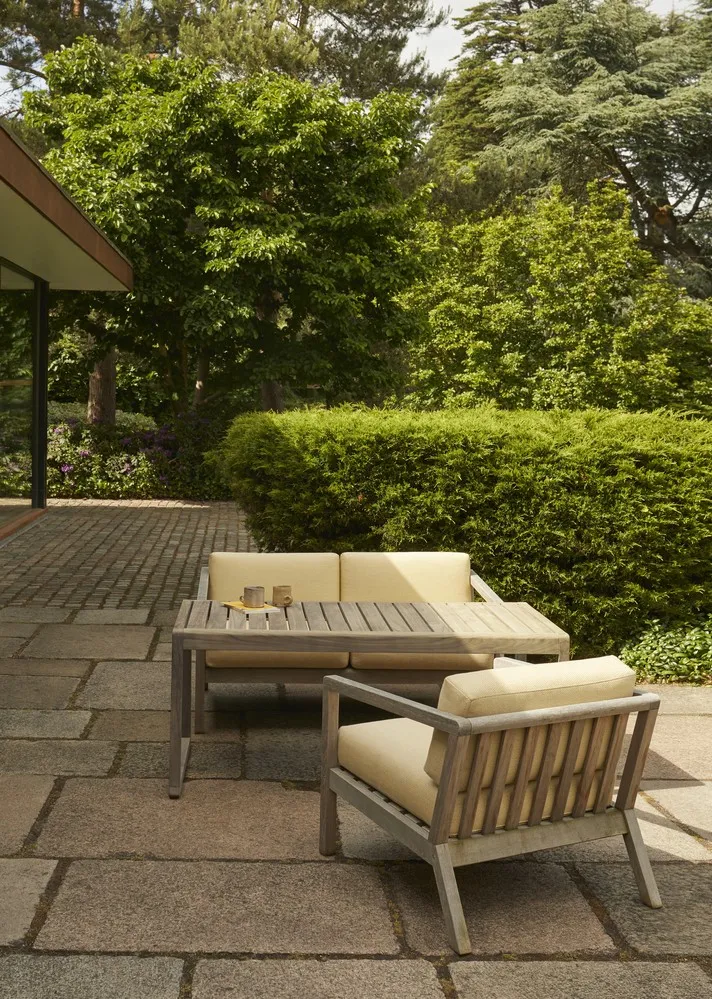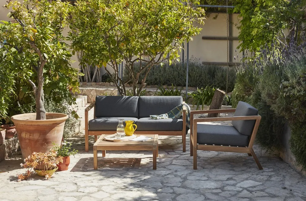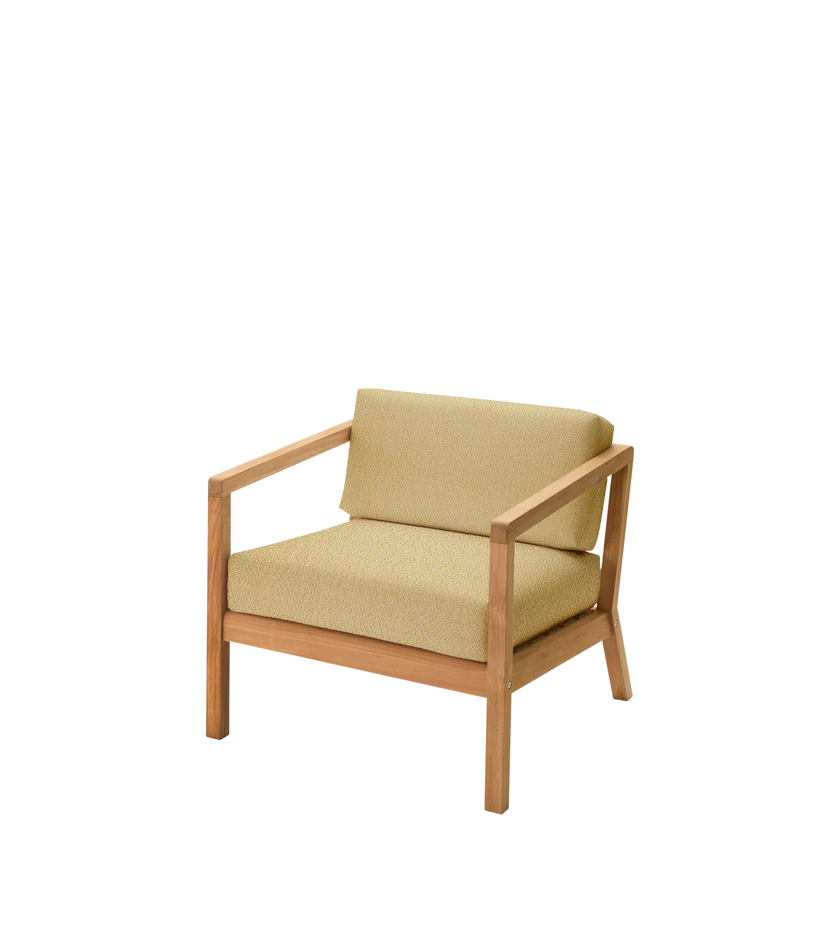 The clean lines of Virkelyst’s 100% FSC-certified teak frame strike a satisfying contrast with the thick, soft and comfortable cushions. Perfect for enjoying comfortable hours in sunny gardens or terraces. Uniting beauty with resilience, the weatherproof upholstery is Oeko-Tex® certified and extremely colourfast and lightfast as well as water and dirt-repellent and mildew-resistant. The cushion dries quickly even after a heavy downpour, as the foam has an open-cell structure that allows water and air to pass through.