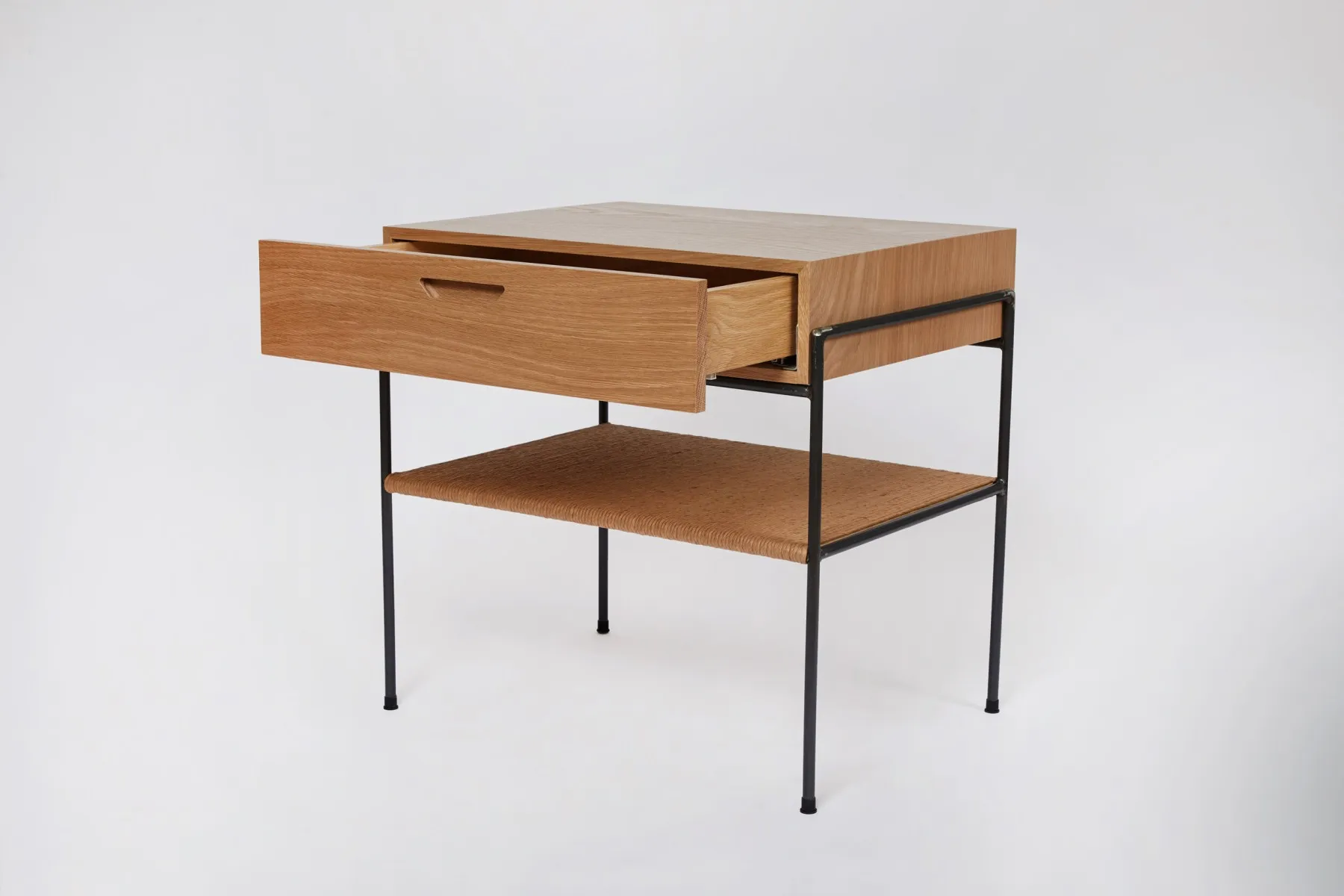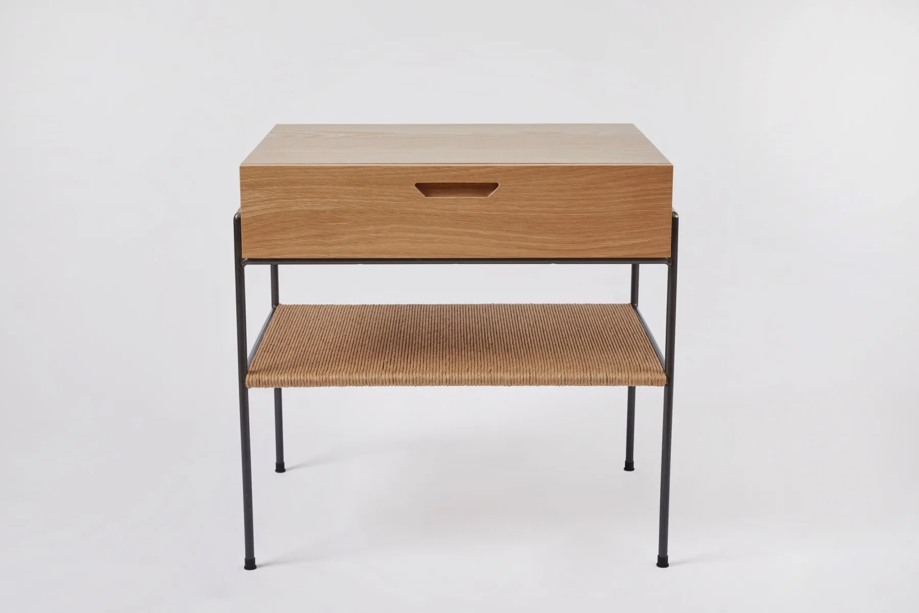 Wood and Rush Bedside Table with Drawer